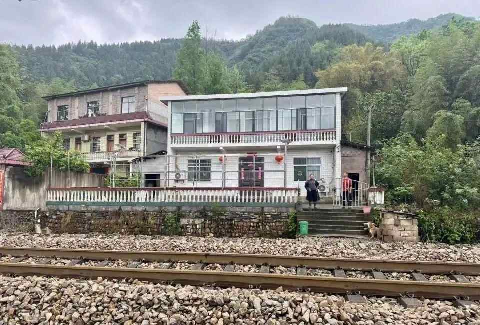 铁路两侧的房子大门对着火车道,村民出行须跨越铁轨