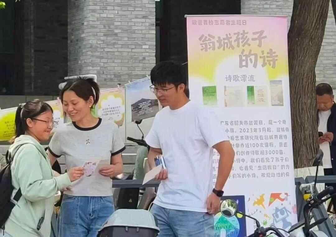 5月10日上午和中午,翁城小诗人们在北大参加了北京大学政府管理学院2025SG青年志愿者主题日活动。在活动现场,展览着“翁城孩子的诗”,小诗人邀请路过的同学们一起来写诗、读诗。他们写道:“小朋友们踏着欢快的脚步,走过未名湖,走过北大/北大就是灿烂的初夏”。