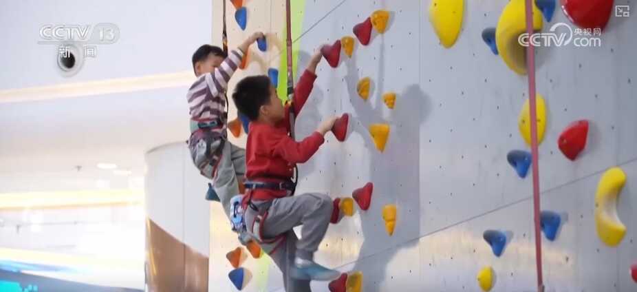 此外,一些新的健身场景也激发了市民参与的热情。在济南某综合商场里,不少人正在体验室内攀岩。作为新兴运动项目,室内攀岩难度可调节,训练时间灵活,一经推出就备受青睐。