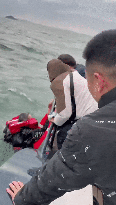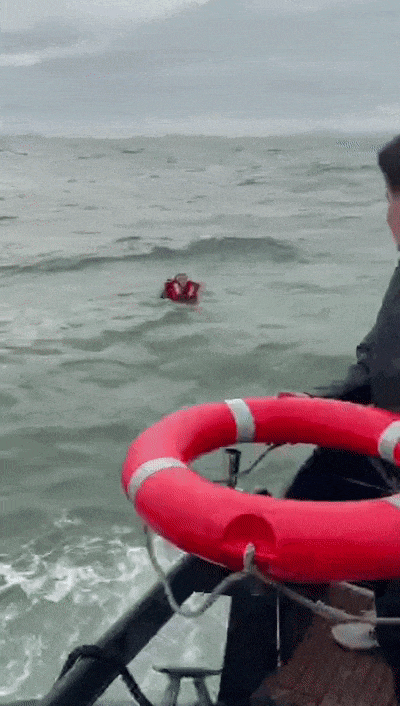 第一位渔民被顺利拉上船,而第二位渔民年纪稍大,由于泡在海中许久,几乎虚脱,贺智威抓住他手臂的瞬间,整个人被拽得踉跄,险些被拉下水。千钧一发之际,其他钓友冲过来抱住他,几个人像拔河般将第二位渔民拖上船。从发现险情到完成救援,全程不过十分钟。