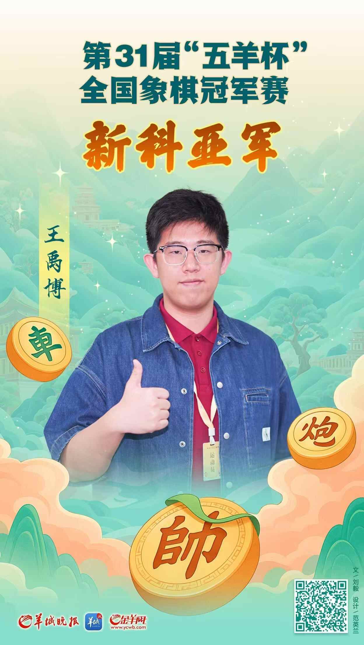 1991年出生的曹岩磊棋风特异大胆,人称“弃子大师”,他在决赛阶段先后击败吕钦、黄光颖,虽然在第四轮被王禹博打入败者组,但在第五轮击败刘子健,晋级冠亚军决赛,最终上演完美逆袭。本届“五羊杯”,2004年出生的王禹博的表现一直相当强劲。大师组资格赛,他在67名参赛高手中4胜3和,以第一名的成绩出线。复赛阶段他发挥依然稳定,以3胜4平积10分的不败战绩再度以小组头名身份晋级决赛。在决赛中,他一路奏凯,先后击败柳大华、刘子健、曹岩磊晋级冠亚军决赛。
