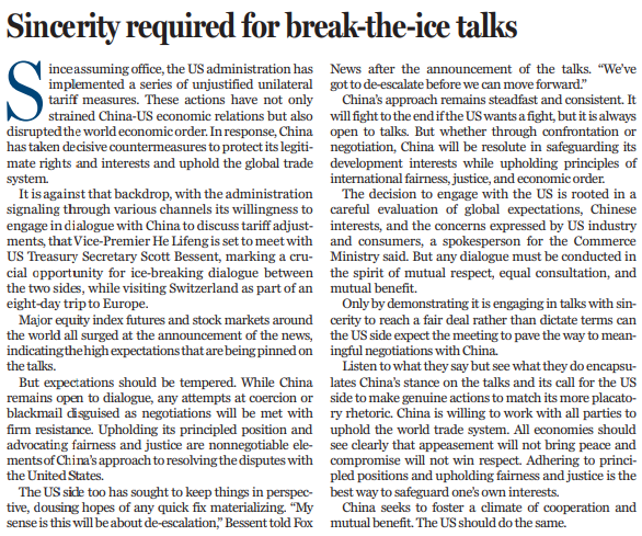 近期,美方不断表示,希望同中方就关税调整进行谈判。当地时间10日上午,中美经贸高层会谈在瑞士日内瓦开始举行。中共中央政治局委员、国务院副总理何立峰作为中美经贸中方牵头人,当天与美方牵头人、美国财长贝森特举行会谈。中美关税战迎来破冰契机。