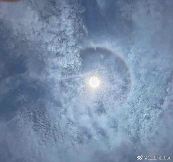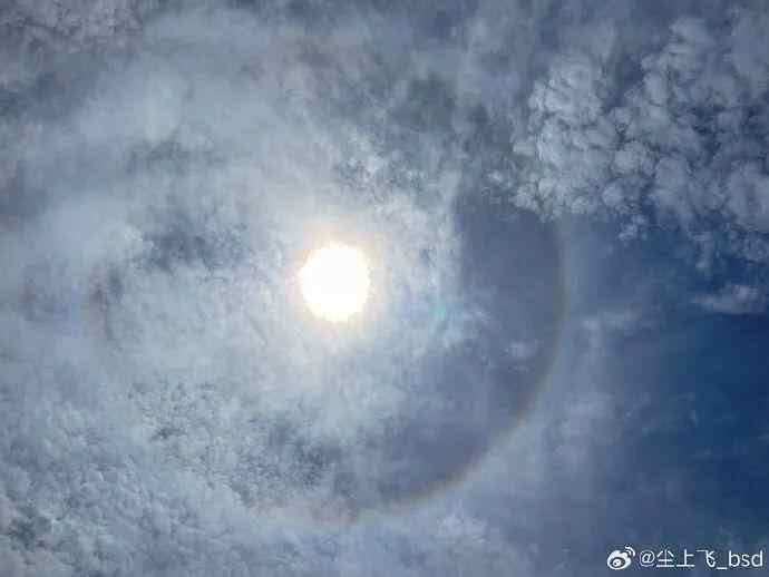 不仅如此,天空也接连献出绝美大片。当天中午,有广州网友拍到了日晕↓