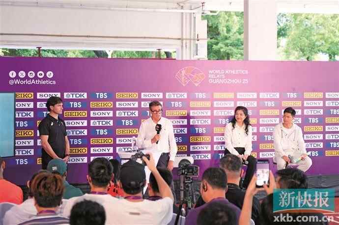 ■5月9日,世界田联接力赛赛前发布会公布了相关情况。新快报记者 郭思杰/摄
