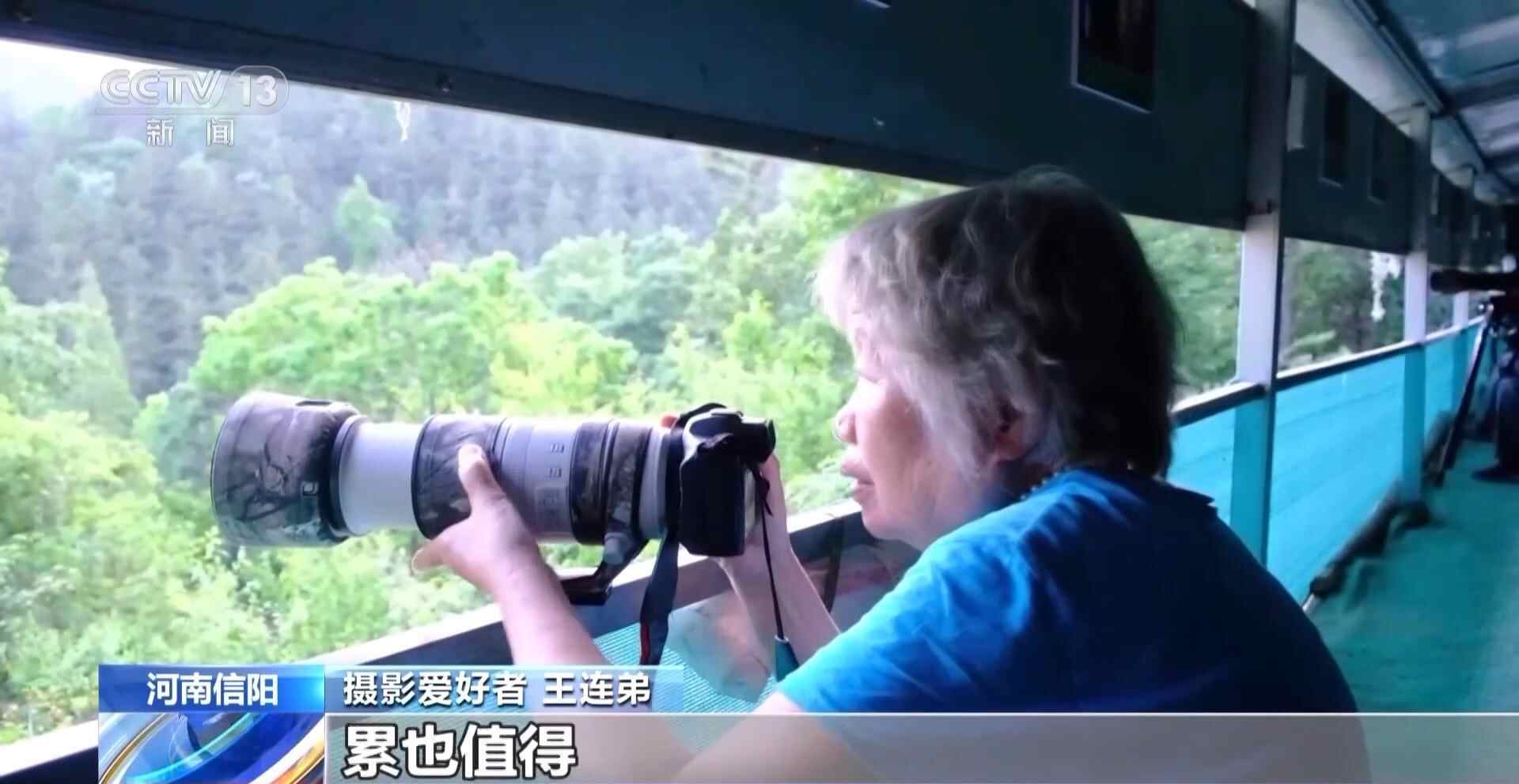 摄影爱好者 王连弟:我79岁了,刚才上山有点喘粗气,跑到鸟塘更喘粗气。值得,累也值得。