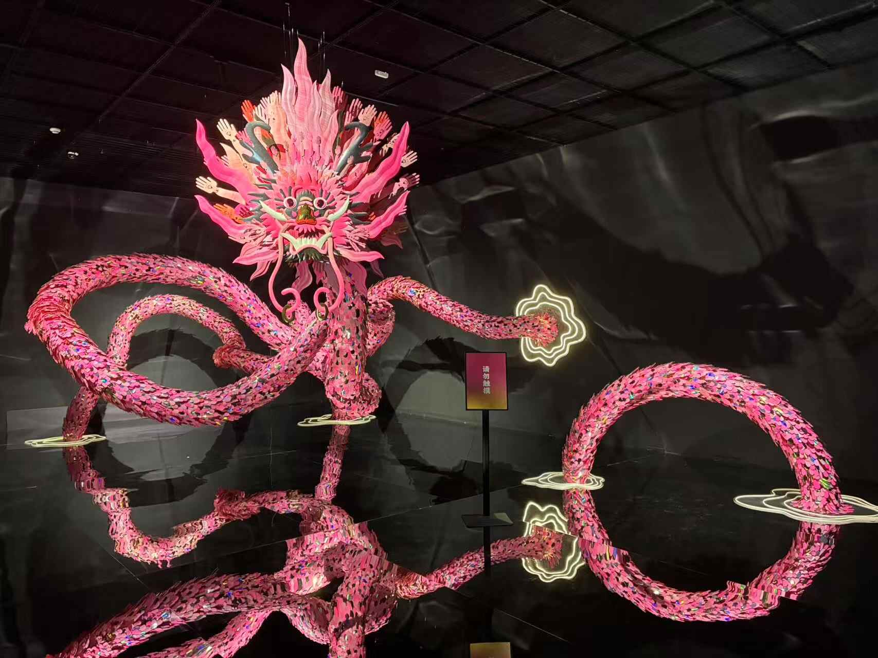 其中的重磅作品《不息》,是一条由镂空纸片构成的粉色长龙,其原型就来自塱头村内祠堂“谷诒书室”内,一幅高悬于门楣的水墨云龙壁画《教子朝天图》……这也是春阳台策展的一贯思路:艺术与古村相连接,并作深入的当代文化特色表达。