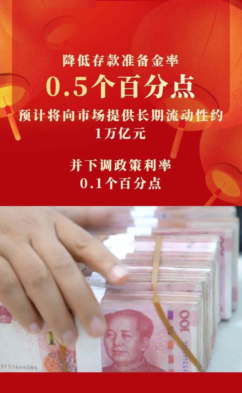 降低存款准备金率0.5个百分点,预计将向市场提供长期流动性约1万亿元,并下调政策利率0.1个百分点。