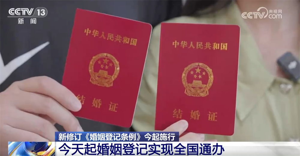 新修订的《婚姻登记条例》10日起施行,一个重要的变化是实行婚姻登记“全国通办”,进一步提高婚姻登记的便利性。