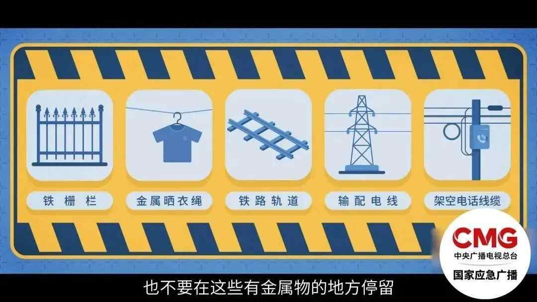 3. 远离电力设备:切勿在紧靠供电线的树木或大型广告牌下停留避雨;不要靠近架空供电线和变压器。