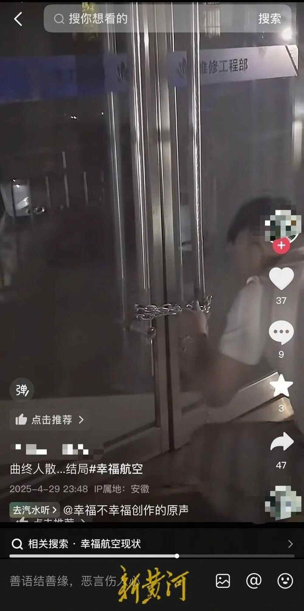 还有一名博主不仅晒出员工集体讨薪的画面,还在4月29日发布的一则“维修工程部”大门上锁的视频中配文“曲终人散……结局”。