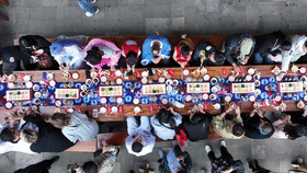 因为电影《哪吒2》而火爆“出圈”的贵阳越界影城,经常举办“花式宠粉”的活动。比如在影城门口摆起具有当地特色的“丝娃娃”长桌宴。