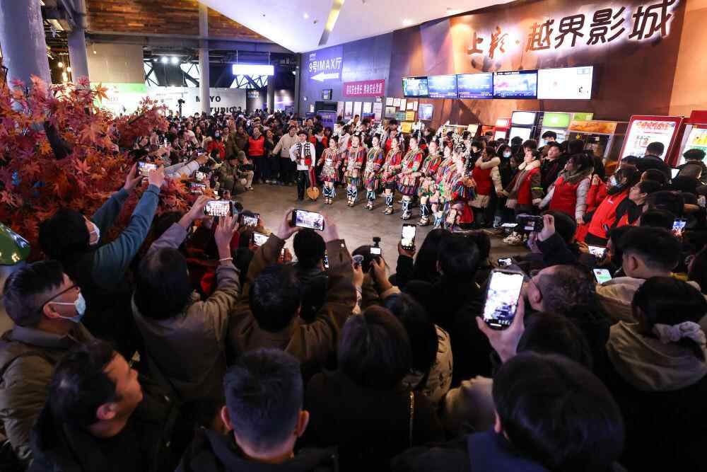 2月25日,观众在贵阳越界影城观看侗族大歌表演。新华社记者 欧东衢 摄