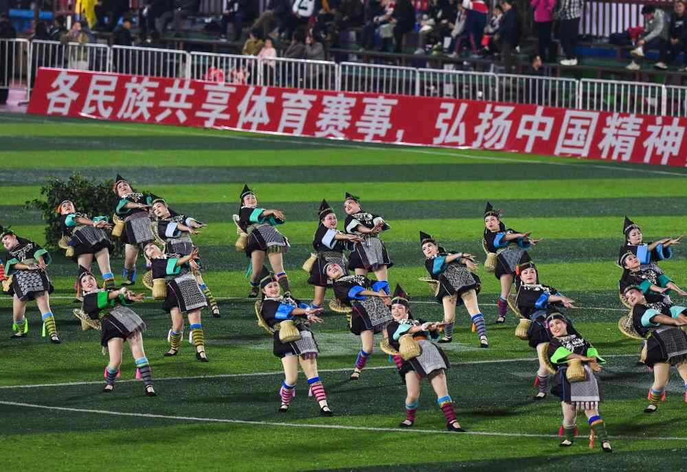 村民在贵州“村超”球场表演民族舞蹈(2025年3月14日摄)。新华社记者 杨文斌 摄