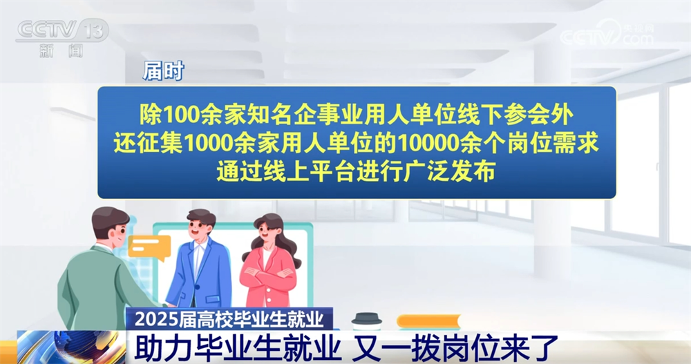 央视网消息:眼下正值高校毕业生就业关键期,教育部即将启动2025届高校毕业生就业“百日冲刺”行动,通过精准拓展就业岗位、优化就业服务,促进高校毕业生就业。
