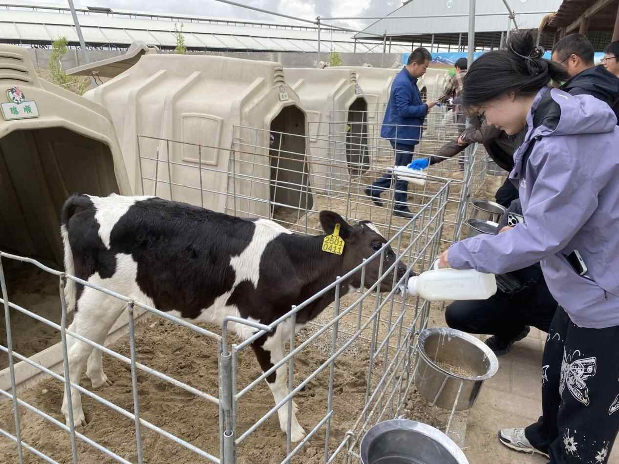 图为天瑞祥牧场研学基地,游客在体验给小牛喂奶。冶明伟摄