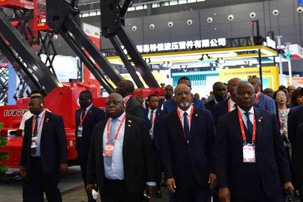 5月15日,非洲驻华使节代表团参观第四届长沙国际工程机械展览会。新华社记者 陈振海 摄