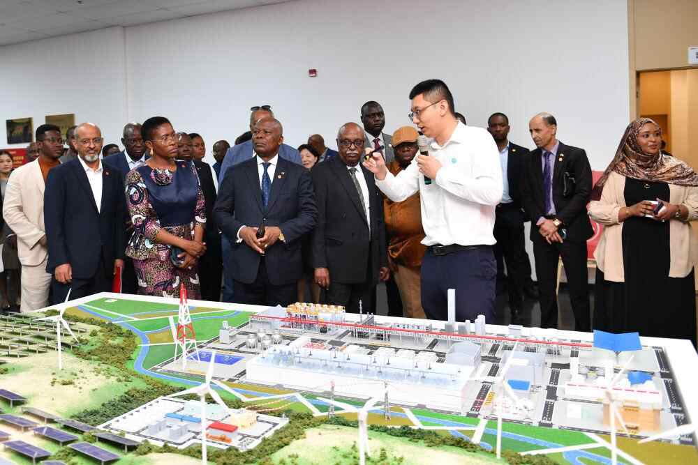 在三一硅能(株洲)有限公司参访时,几内亚驻华大使科伊塔向身旁的非洲同事介绍了展板上的几内亚矿山微电网项目。她说,几内亚的医疗卫生、交通网络、住房工程等领域亟需能源支撑,期待将中国清洁能源的先进技术经验同几内亚人力资源优势相结合,开创可持续发展的互利共赢新局面。