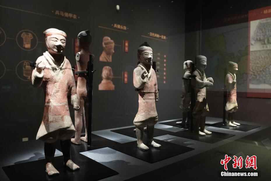 5月16日,“汉和天下——西汉帝陵文化展”在南昌汉代海昏侯国遗址博物馆开幕,共展出西汉帝陵和海昏侯墓出土的128件/套文物。展览通过“西汉帝陵”“长乐未央”“汉风曜世”三大单元,深入解读西汉帝陵的文化内涵与历史价值,通过这些珍贵的文物,让广大游客得以触摸大汉历史的脉络,感受大汉文明的魅力。图为展览文物彩绘戴冠红衣扛械陶俑,杨家湾汉高祖长陵陪葬墓出土,咸阳博物院藏品。