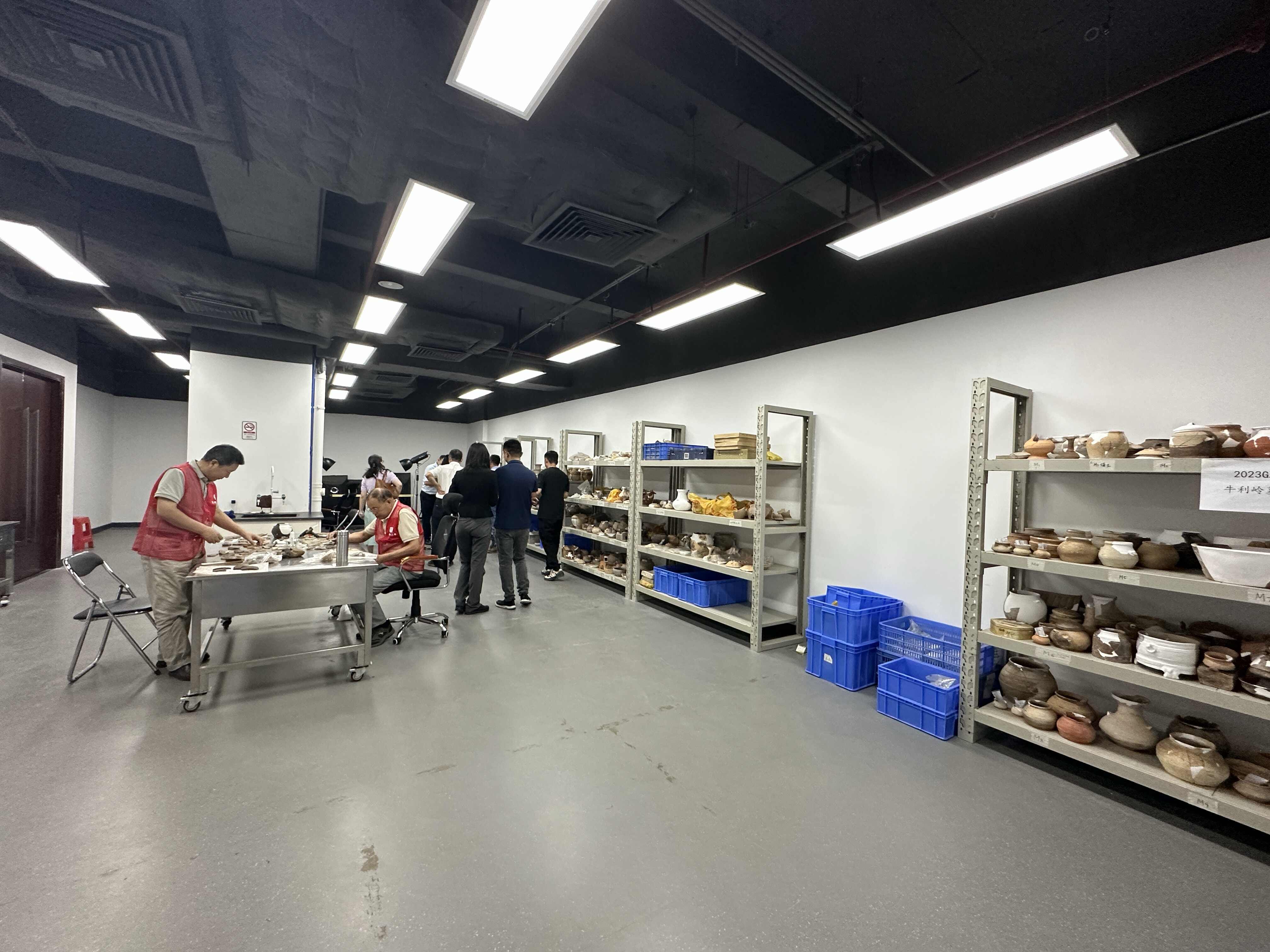 记者看到,在文物库房,考古工作人员正在对此前于增城区发掘的老虎岭、墨依山等文物进行整理。据透露,关于增城汉墓等的研究工作正在系统进行。