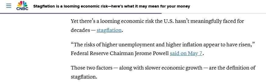 △美国消费者商业与新闻频道近期发表文章指出:一个迫在眉睫的经济风险——滞胀已经初现端倪。而美国几十年来一直没有真正面对。