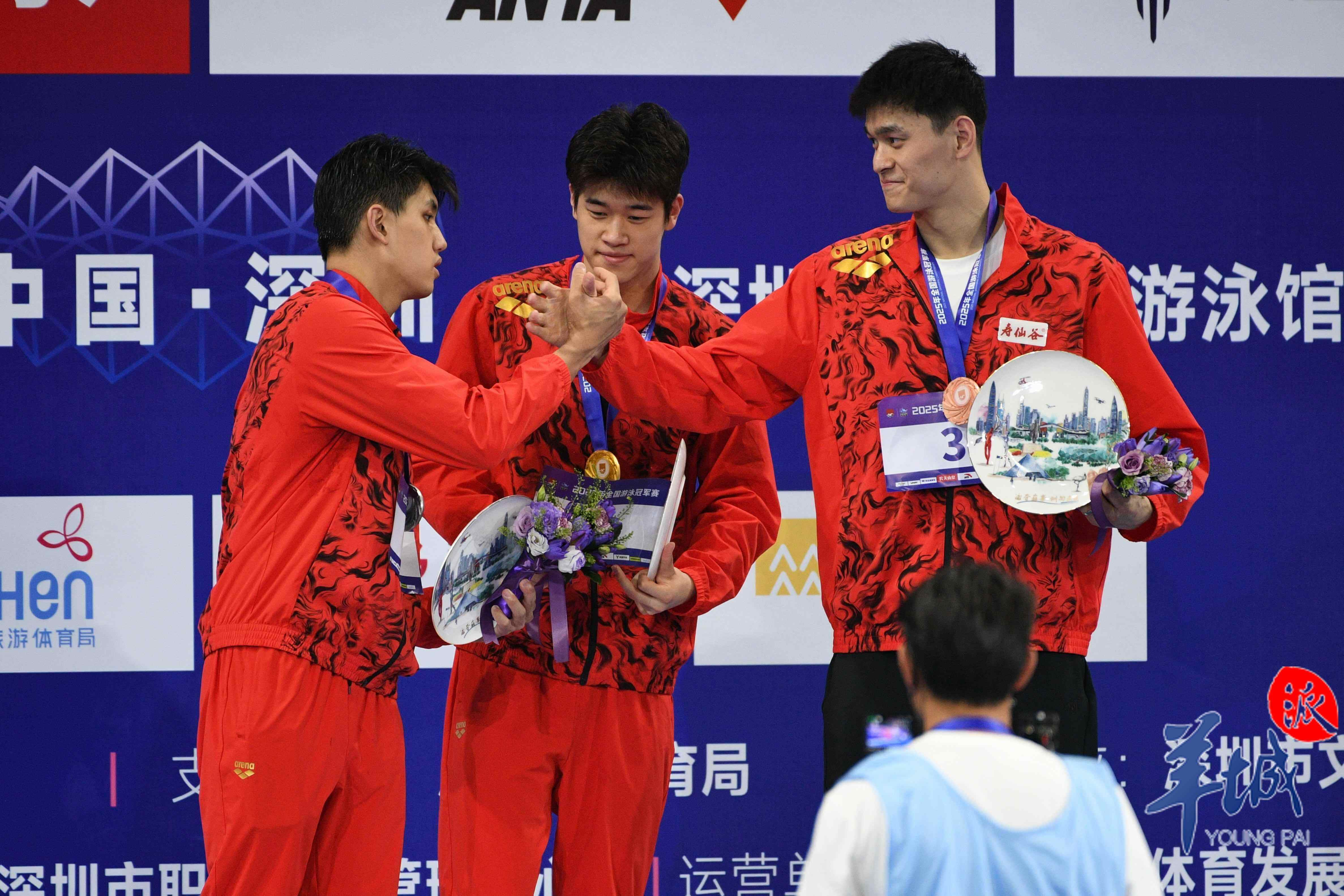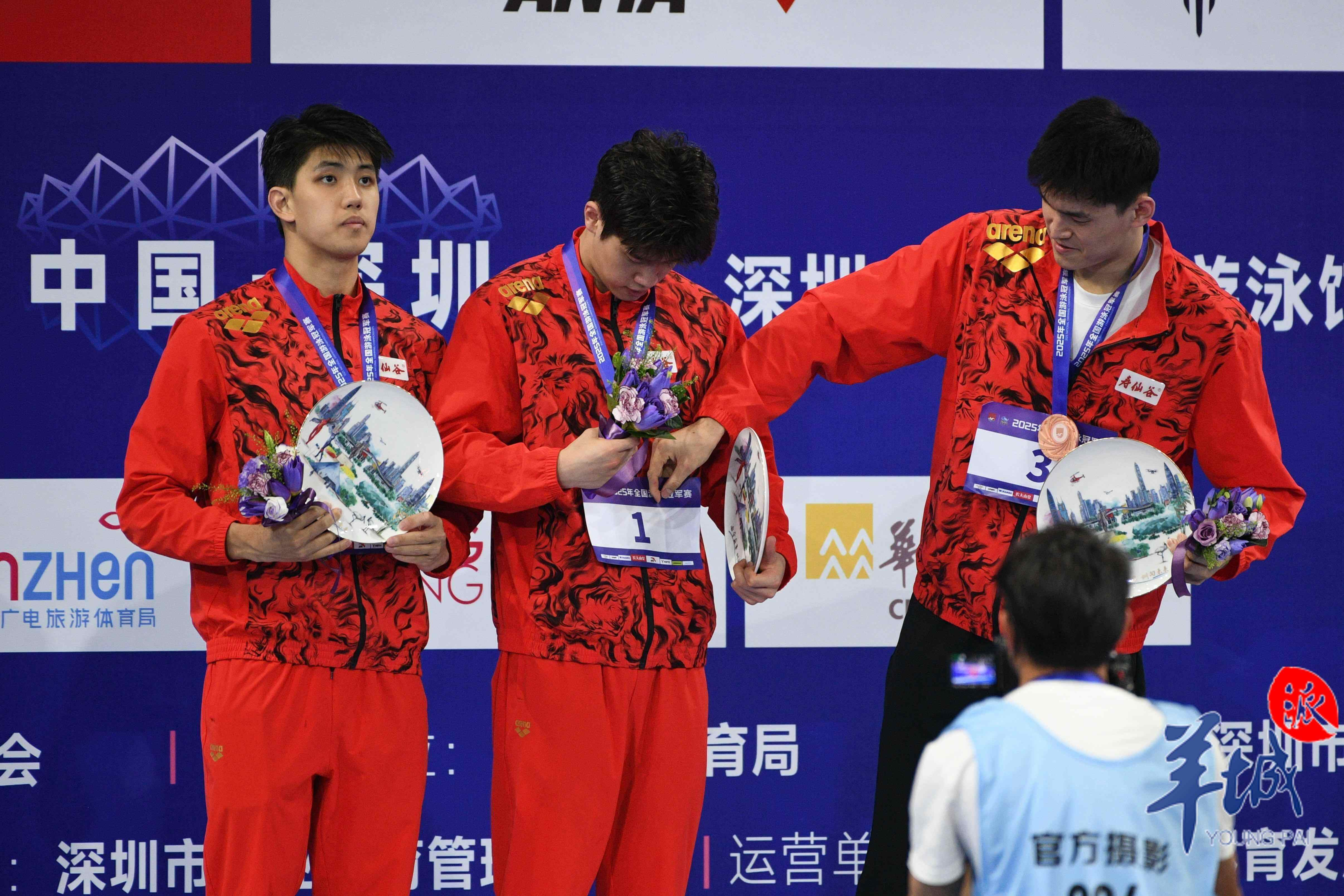 5月17日晚,在2025年全国游泳冠军赛男子400米自由泳决赛中,潘展乐以3分45秒34的成绩夺得冠军,费立纬以3分45秒51的成绩获得亚军,孙杨以3分47秒53的成绩获得第三名。