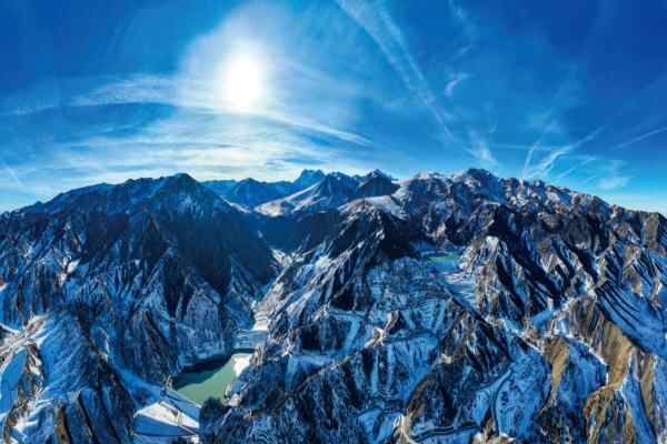 阜康抽水蓄能电站地处天山群峰之中,水资源丰富。依托雄伟的天山,上下水库依山而建,巨大的地势差能储蓄更多的电能。