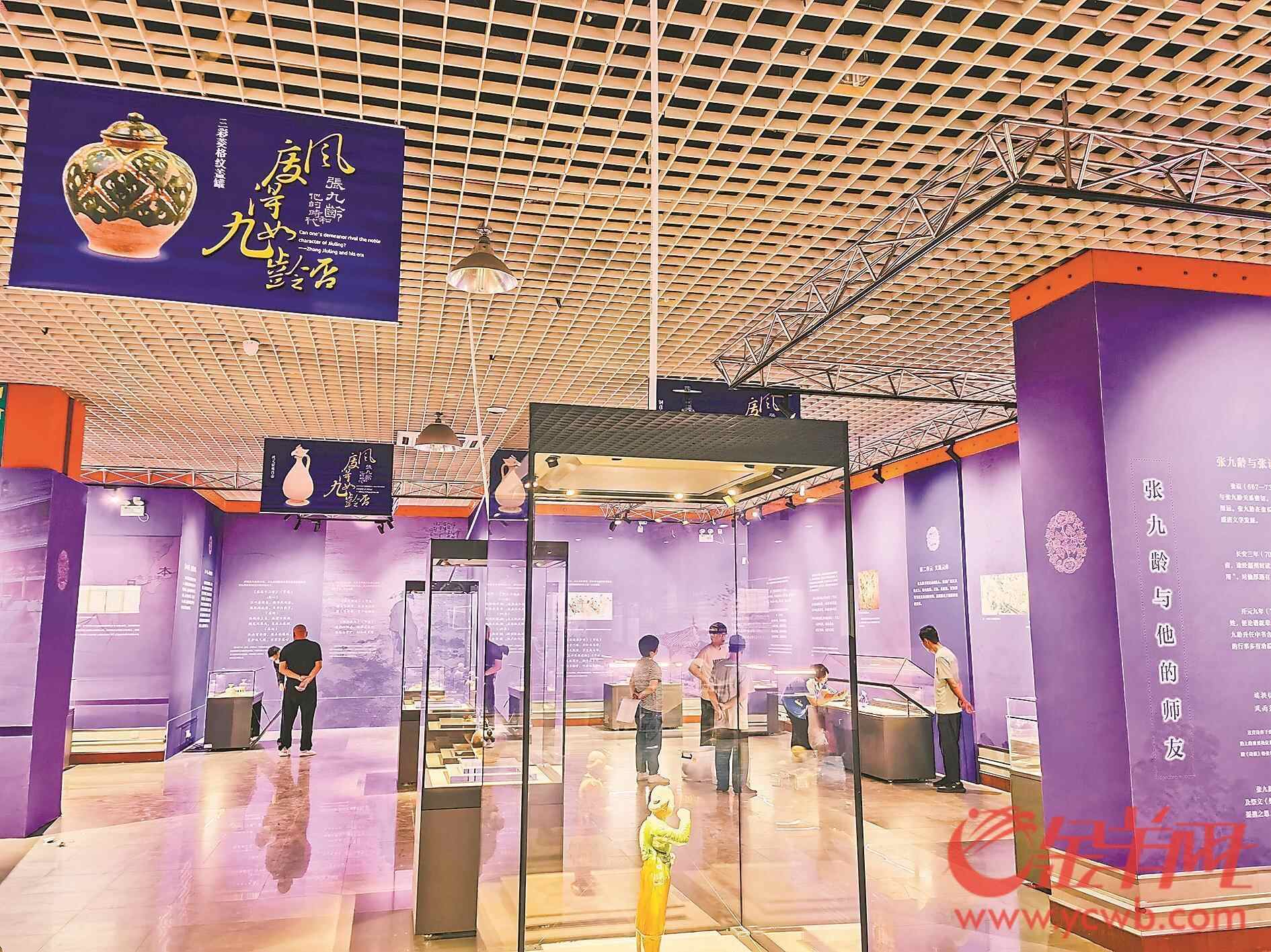 此次展览以韶关罗源洞山麓张九龄墓葬早年考古信息为引,集中展出陶瓷、碑刻、玉饰、拓片等类型的唐代文物上百件,其中张九龄墓、张九皋墓出土的滑石碟、青釉碗、玉饰等以及清代仿宋张九龄告身帖石刻文物等尤为珍贵。
