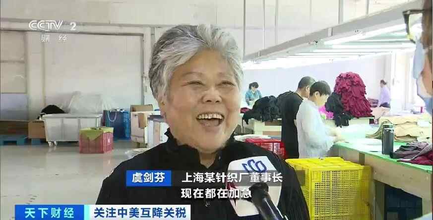 中美关税调整后,上海的一家针织厂接到了美国客户的催单,目前正在抓紧赶工生产。