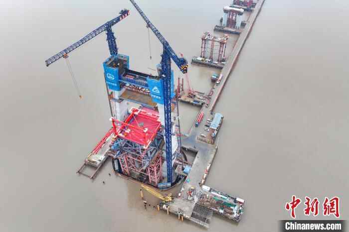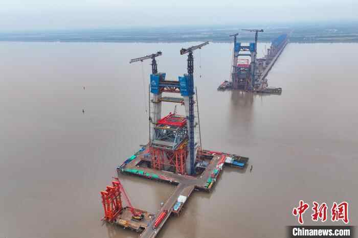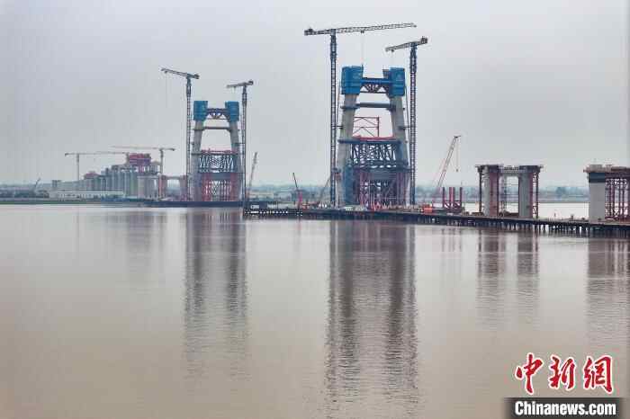 图为建设中的崇启公铁长江大桥。中新社记者 泱波 摄