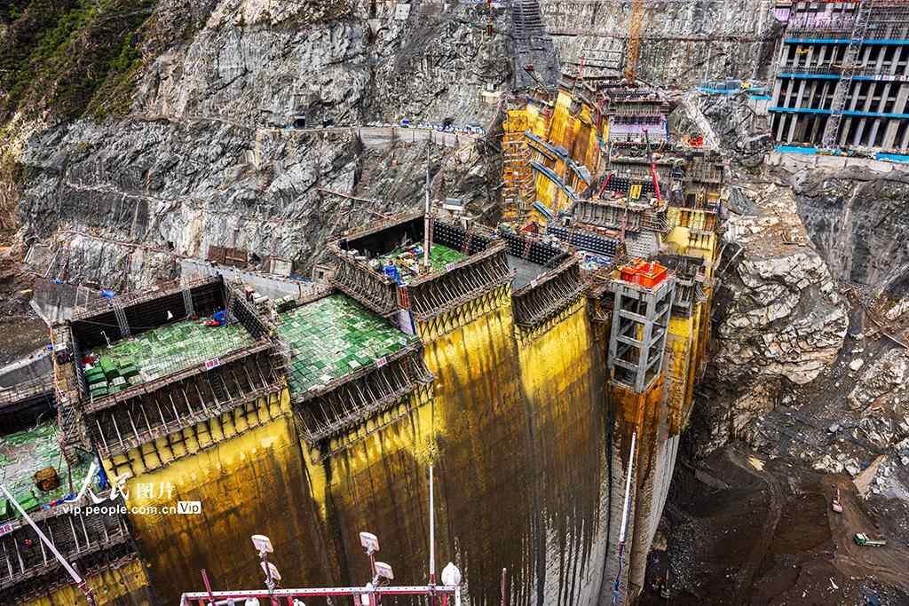 2025年5月14日,四川省甘孜藏族自治州白玉县叶巴滩水电站建设现场,工人正在有序施工。徐志军摄(人民图片网)