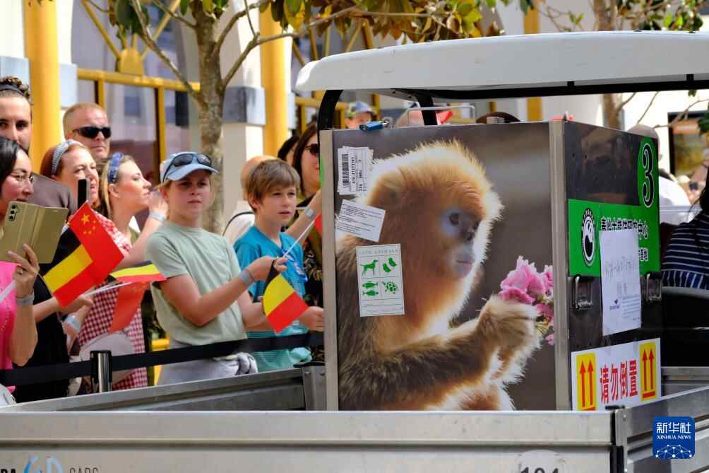 5月14日,在比利时布吕热莱特,人们欢迎金丝猴抵达天堂动物园。
