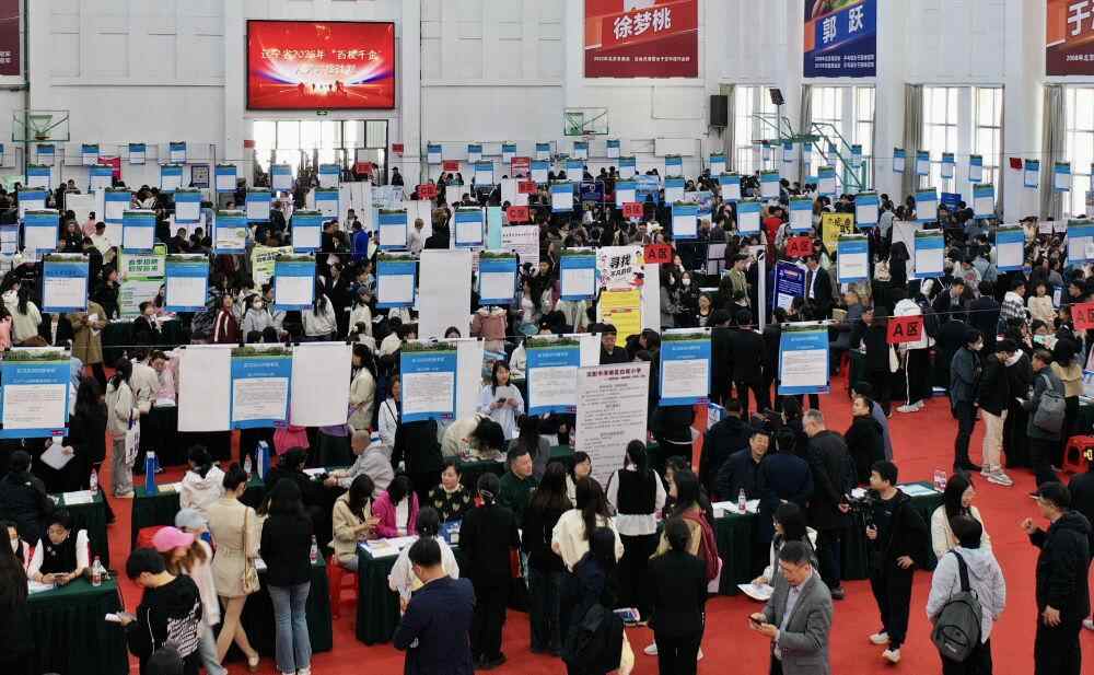 2025年4月26日在鞍山师范学院拍摄的招聘会现场(无人机照片)。当日,作为2025年“百万学子留辽来辽”专项行动系列活动之一,辽宁省文科及师范类专场招聘会在鞍山师范学院举行。活动汇聚178家用人单位,提供就业岗位2100余个,覆盖教育、金融、新媒体等八大领域。新华社发