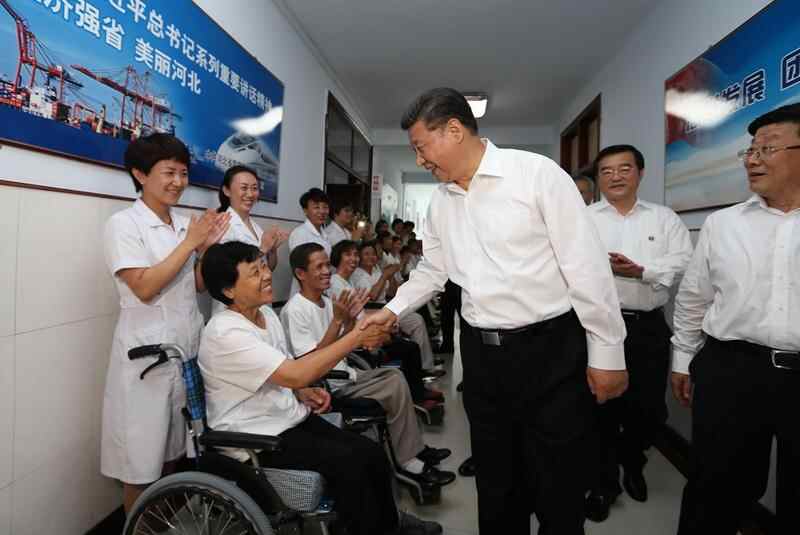 2016年7月28日,习近平总书记在河北省唐山市截瘫疗养院看望慰问截瘫伤员。