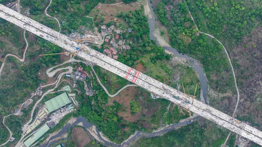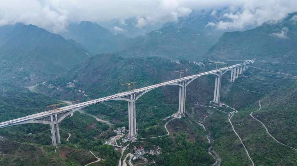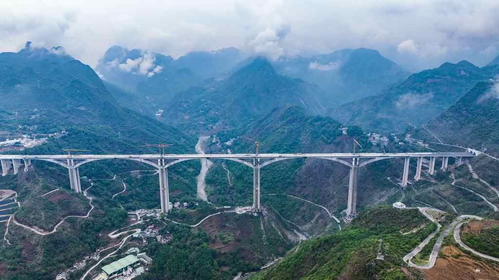 5月15日,由贵州路桥集团承建的纳晴高速六枝特大桥顺利合龙,为推动纳(雍)晴(隆)高速全线通车的目标奠定了坚实基础。六枝特大桥位于贵州省六盘水市六枝特区中寨乡境内,是纳雍至晴隆高速公路的控制性工程,大桥全长2023.5米,桥面距谷底水面净空315米。新华社记者 陶亮 摄