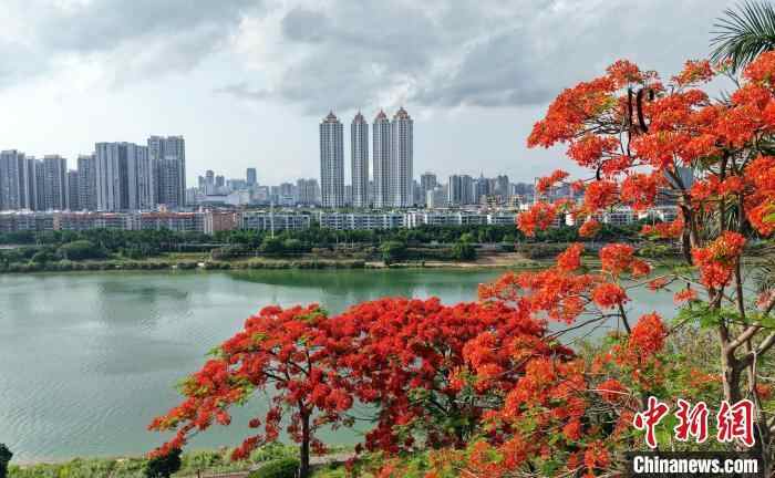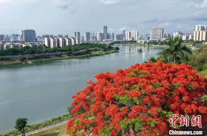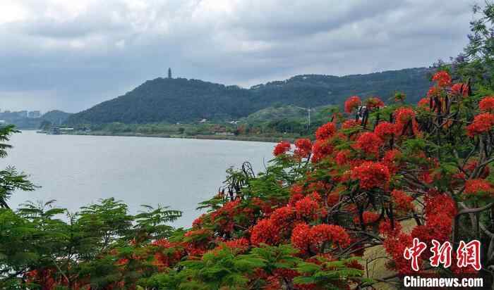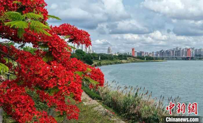 图为盛开的凤凰花扮靓南宁邕江沿岸。黄云峰 摄