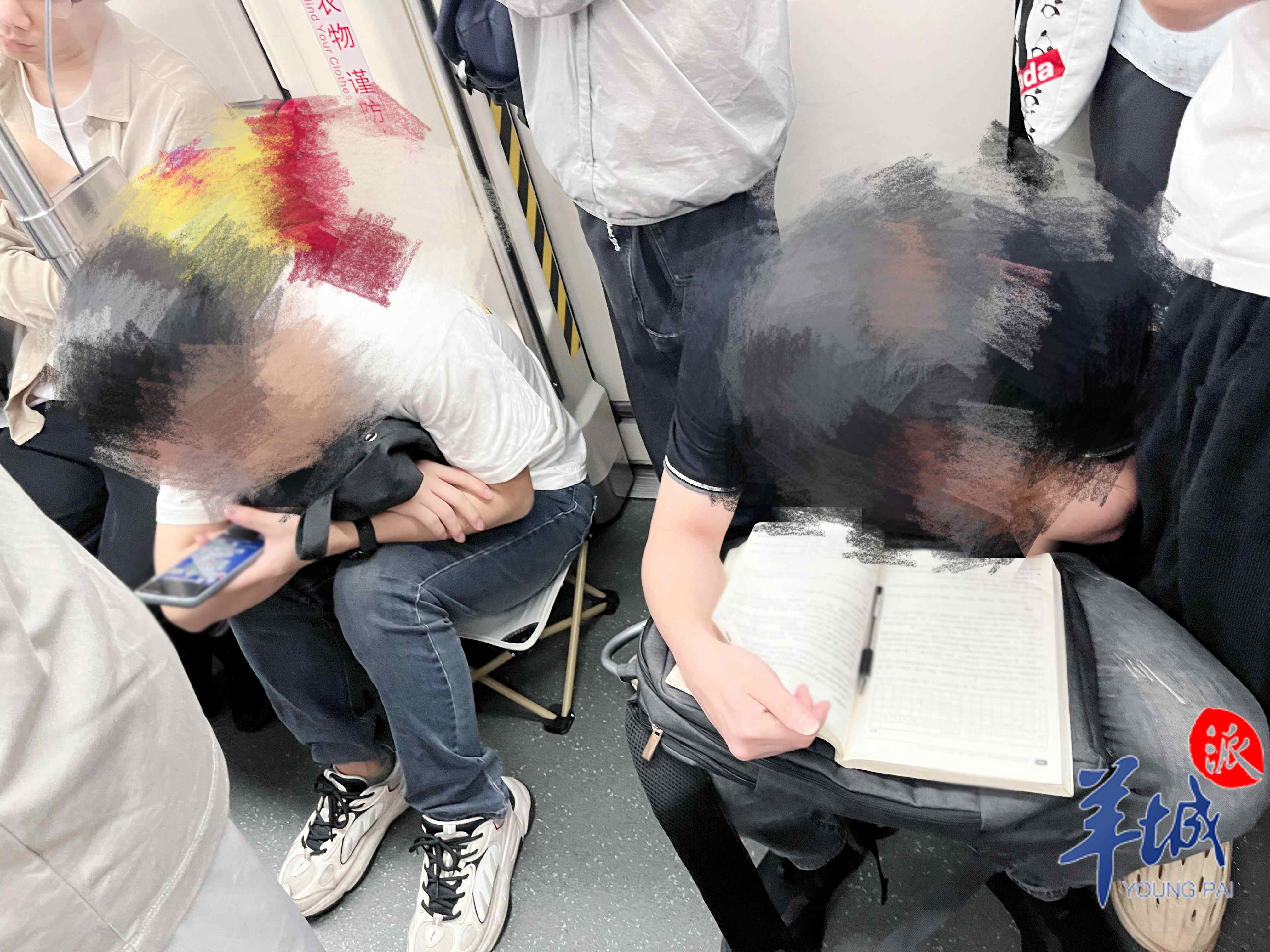 那么,可否禁止携带小板凳进站?目前,《广州市城市轨道交通乘客守则》和《广州市城市轨道交通管理条例》中,未提到禁止携带小板凳。另一方面,还有部分乘客直接坐在地上,因此禁止携带小板凳无法真正解决问题。