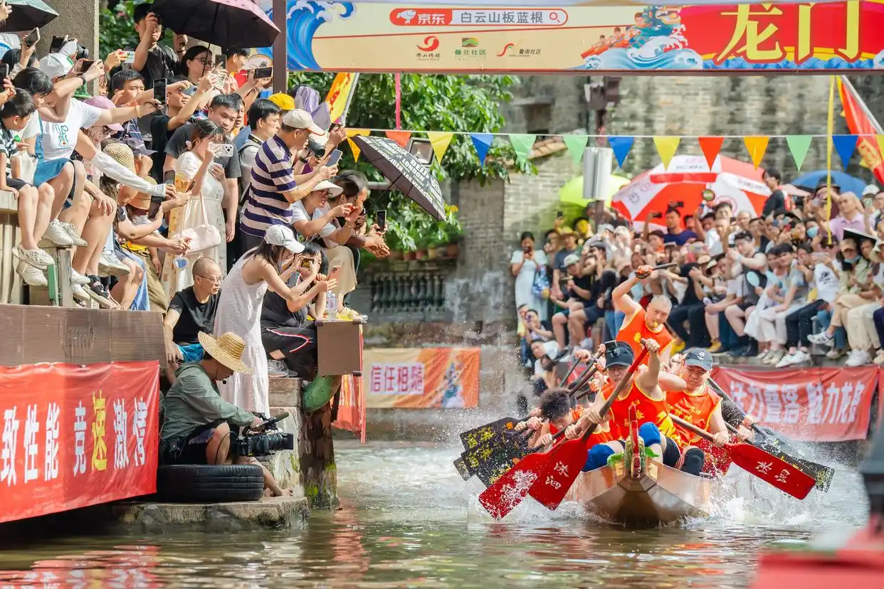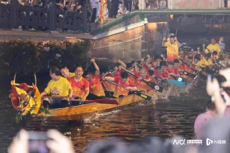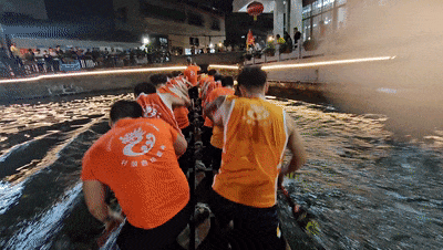 几十条龙船轮番上阵,观众挤满河岸,手机架起三脚架,灯光照着赛道,火爆的气氛持续至深夜,吸引大量村民和游客前来观看。当落水的“扒仔”重整旗鼓再次出发,现场的欢呼声和加油声在夜空中更是震撼。