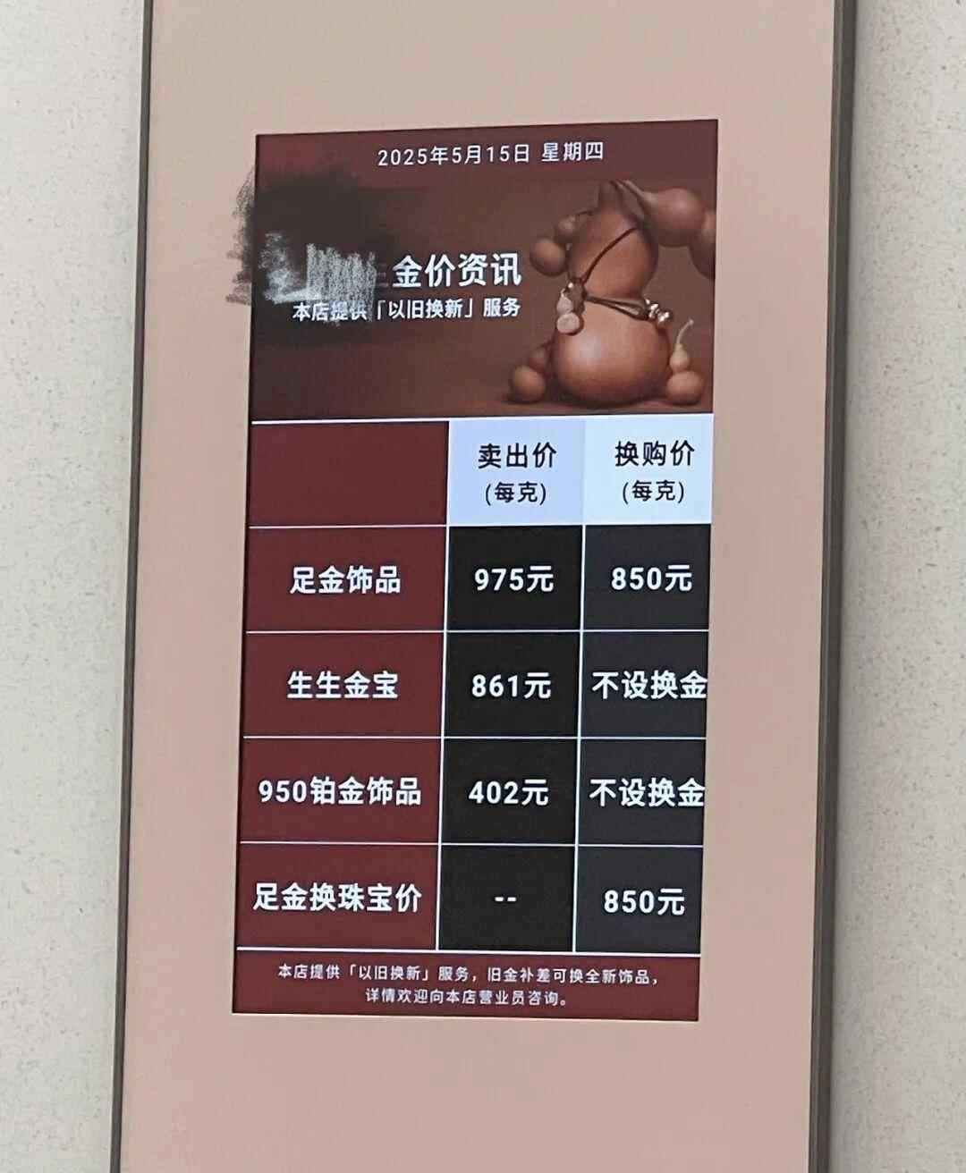 随着国际金价下跌,国内金店零售价格也连续三天跌回1000元/克之内。今天,杭城多家品牌金店黄金零售价格比昨天下跌16元,周大福、曼卡龙、潮宏基等金价为976元/克,个别品牌挂至975元/克。
