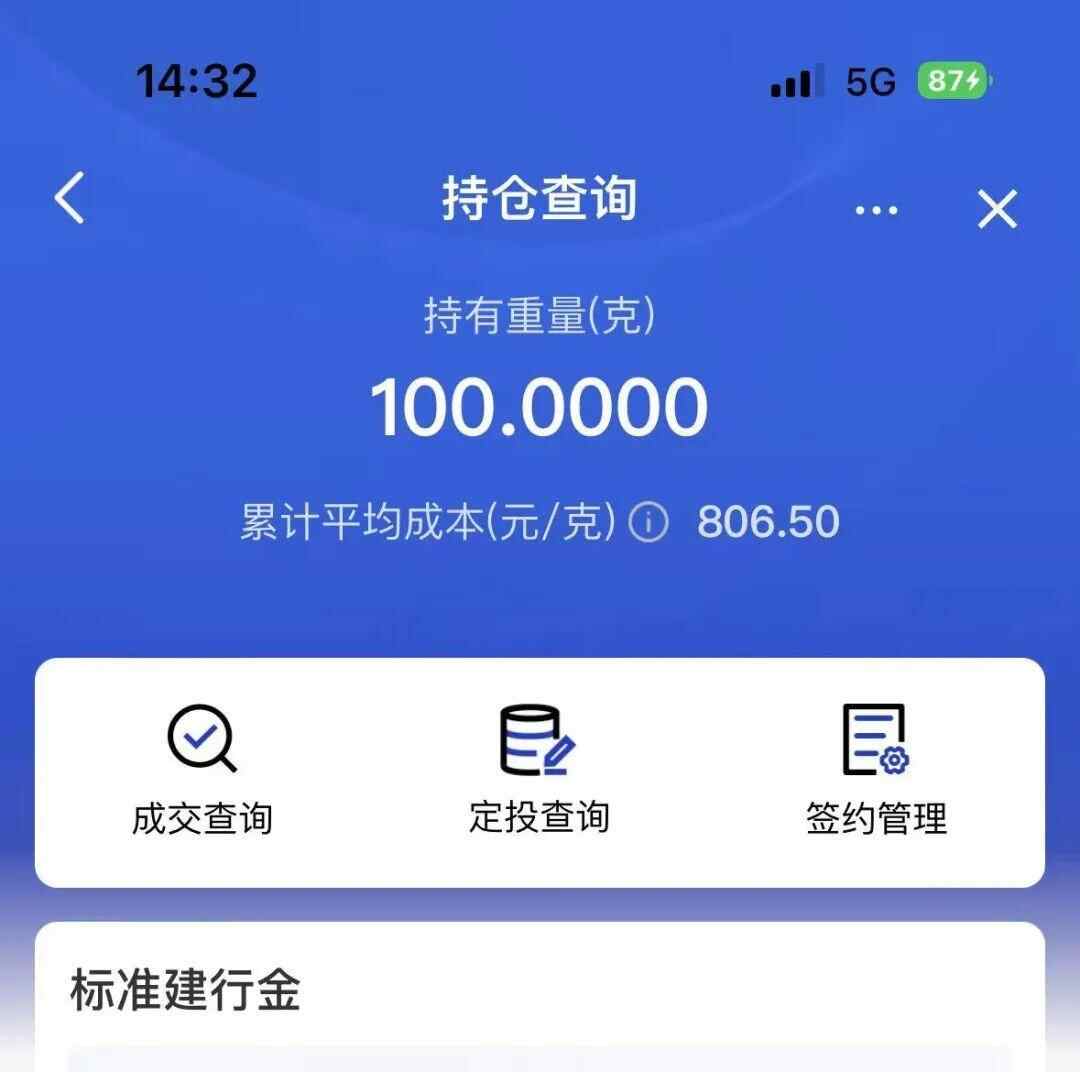 没想到一买就跌。小郭看着黄金走势,心里有点急,当天再次紧急在建行“补仓”100克积存金,这次积存价格为806.5元/克,她又投入8万多元。