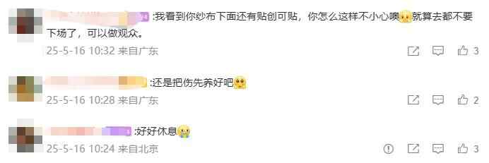 不少歌迷纷纷担心留言:“小心点啊”“休息休息”“一定先养好伤要紧,来日方长”。