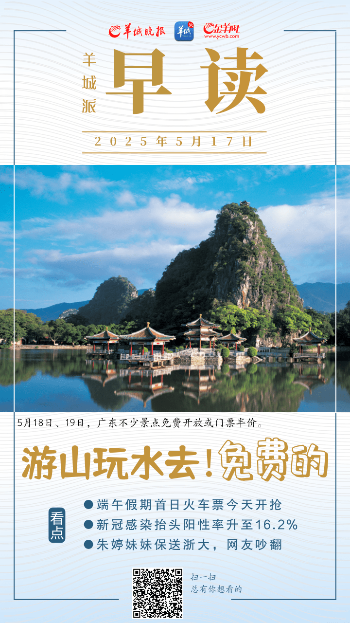 ◆端午假期首日火车票今天开售,中短途线路成热门。详情--> 居民出游主打民俗体验,“龙舟”“古镇”搜索量暴涨。详情-->免费!半价!广东多个景区宣布了。详情-->