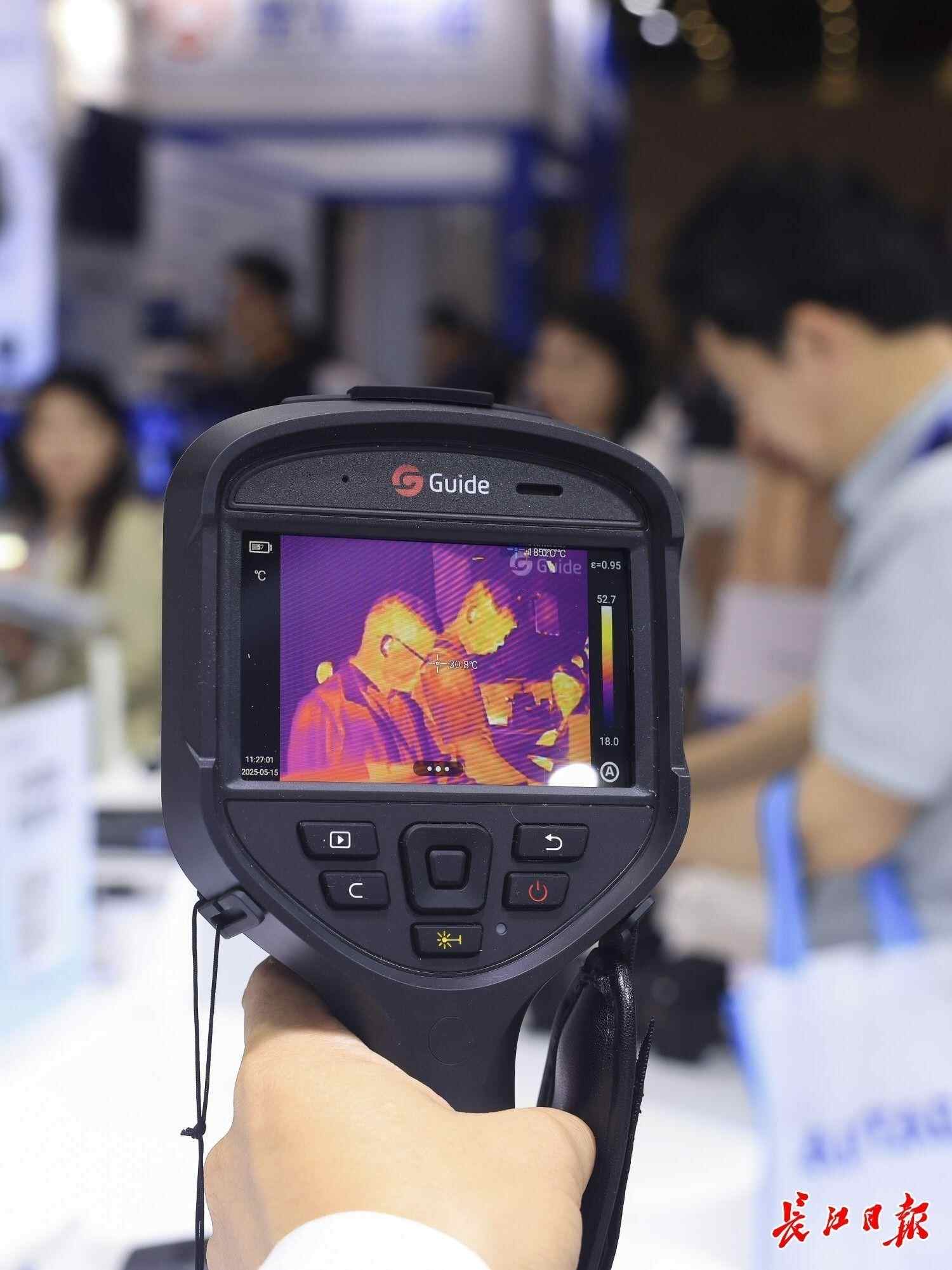第二十届光博会高德红外展位,一位观众体验红外热成像探测设备。记者 胡冬冬 摄