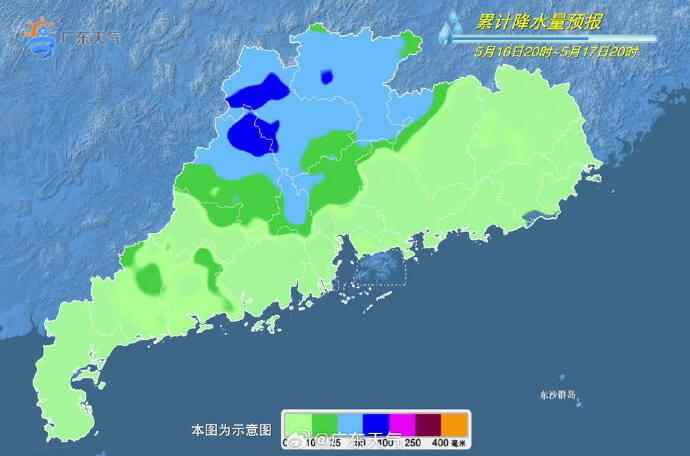 @广东天气预计,受西南气流加强和西风槽影响,17-19日广东省中北部有中到大雨局部暴雨或大暴雨降水过程。
