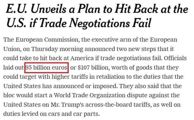 这些关税叠加起来,对欧盟的影响不言而喻。
