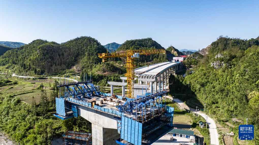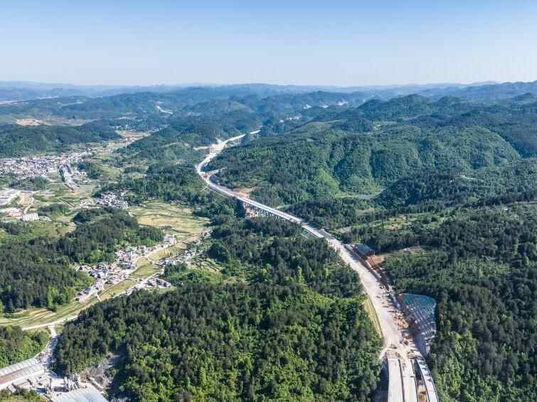 建设中的贵平高速昌明枢纽(5月12日摄,无人机照片)。