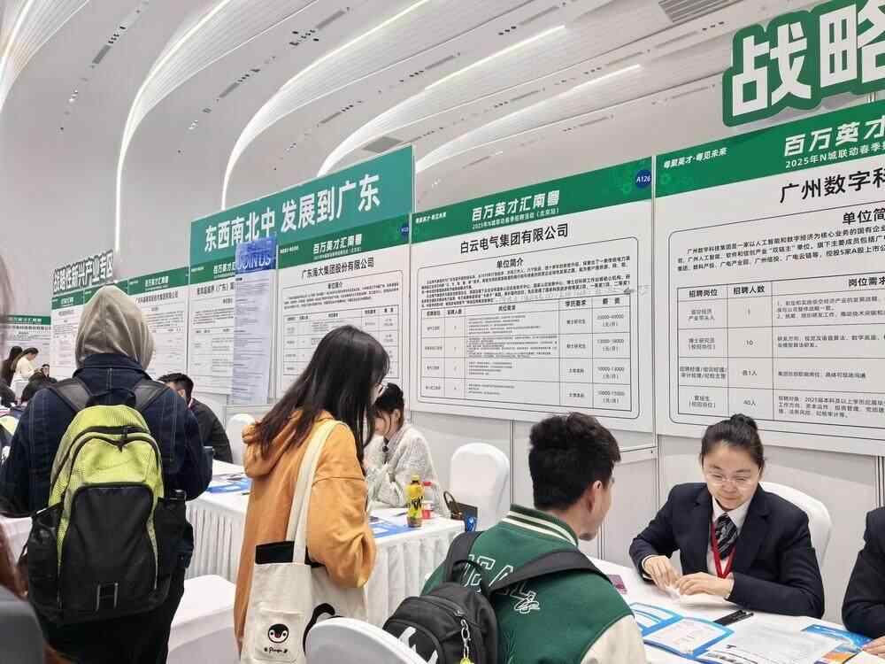 梁隽瑜是一名在外求学多年的广东学子,随着毕业临近,回粤发展的意愿越发强烈。“我是来自北京化工大学电子信息工程专业的学生,家在东莞,今天看到白云本土企业白云电气集团在这里招聘嵌入式工程师,非常符合我的预期,期待能到企业就业。”梁隽瑜说。
