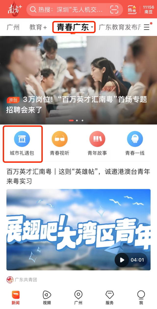 打开南方+客户端“青春广东频道”,点击“城市礼遇包”入口,即可查询。