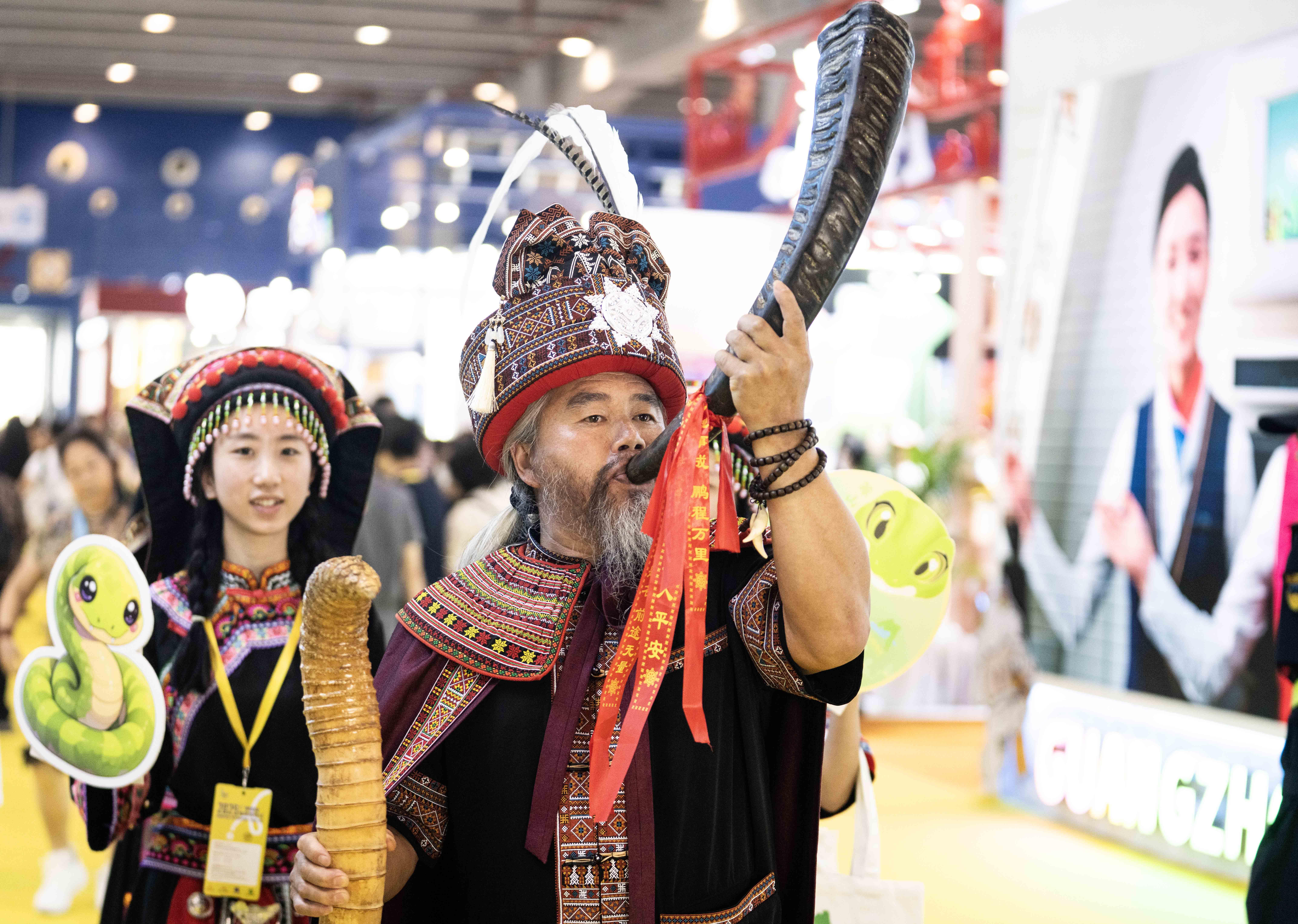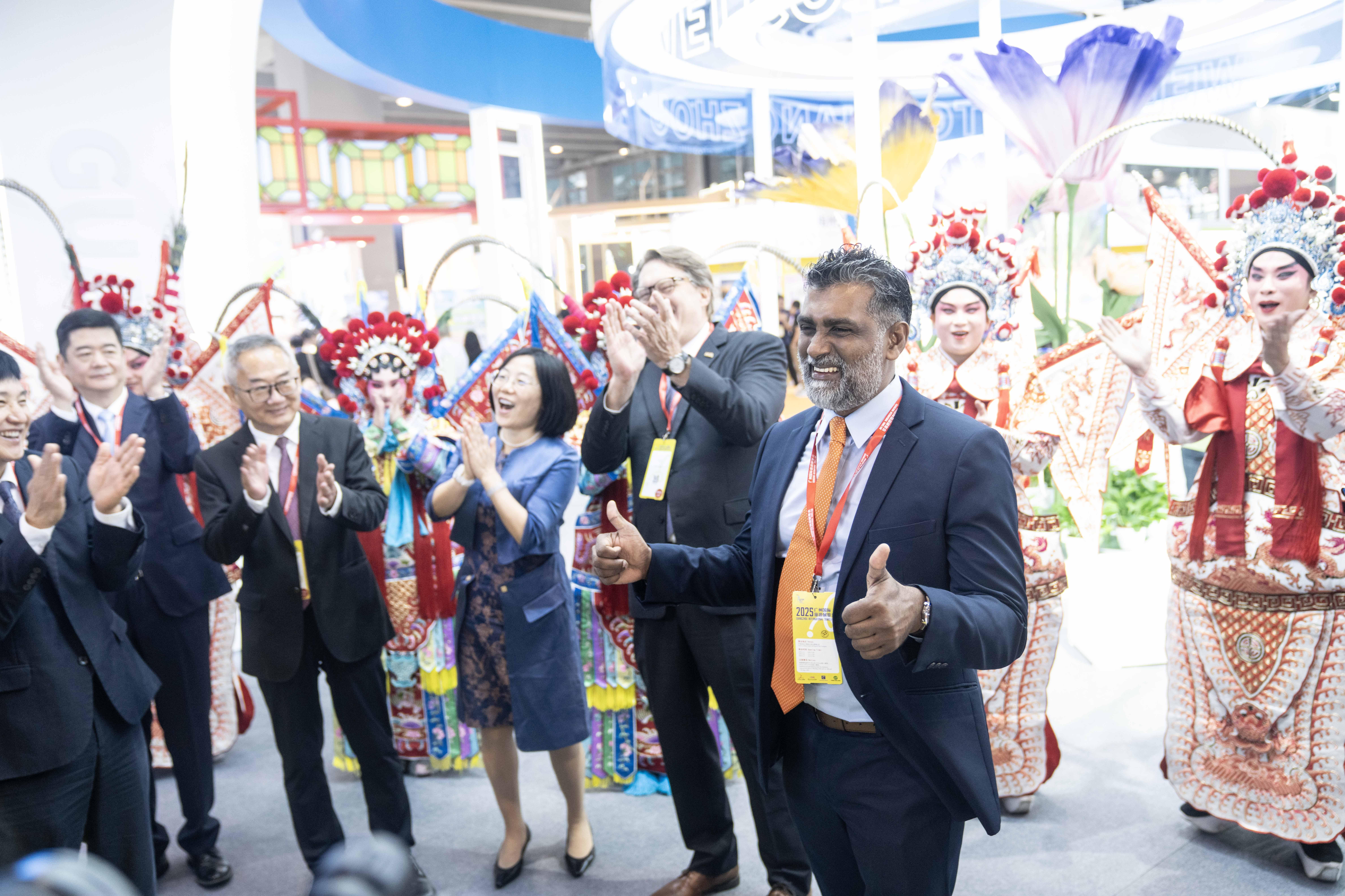 5月15日,第三十三届广州国际旅游展览会(2025GITF)如约绽放于琶洲广交会展馆C区。这场跨越山海的诗意之约,将延续至5月17日,汇聚55个国家和地区的千余个旅游目的地与机构,以旅为桥,以文为帆,共赴一场文明互鉴的星辰之宴。开幕式上,伊朗、安哥拉、斯里兰卡等37国驻穗领事官员与代表,以色彩各异的民族风情,为这场盛会织就一幅斑斓的“世界画卷”。