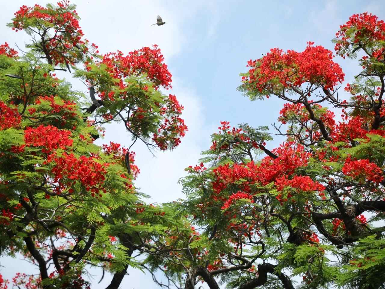 “每年5月初,凤凰木就开始开花,到5月中旬就开得特别繁盛,大概再过一周,应该可以看到整树红花了。”当地村民周先生说。