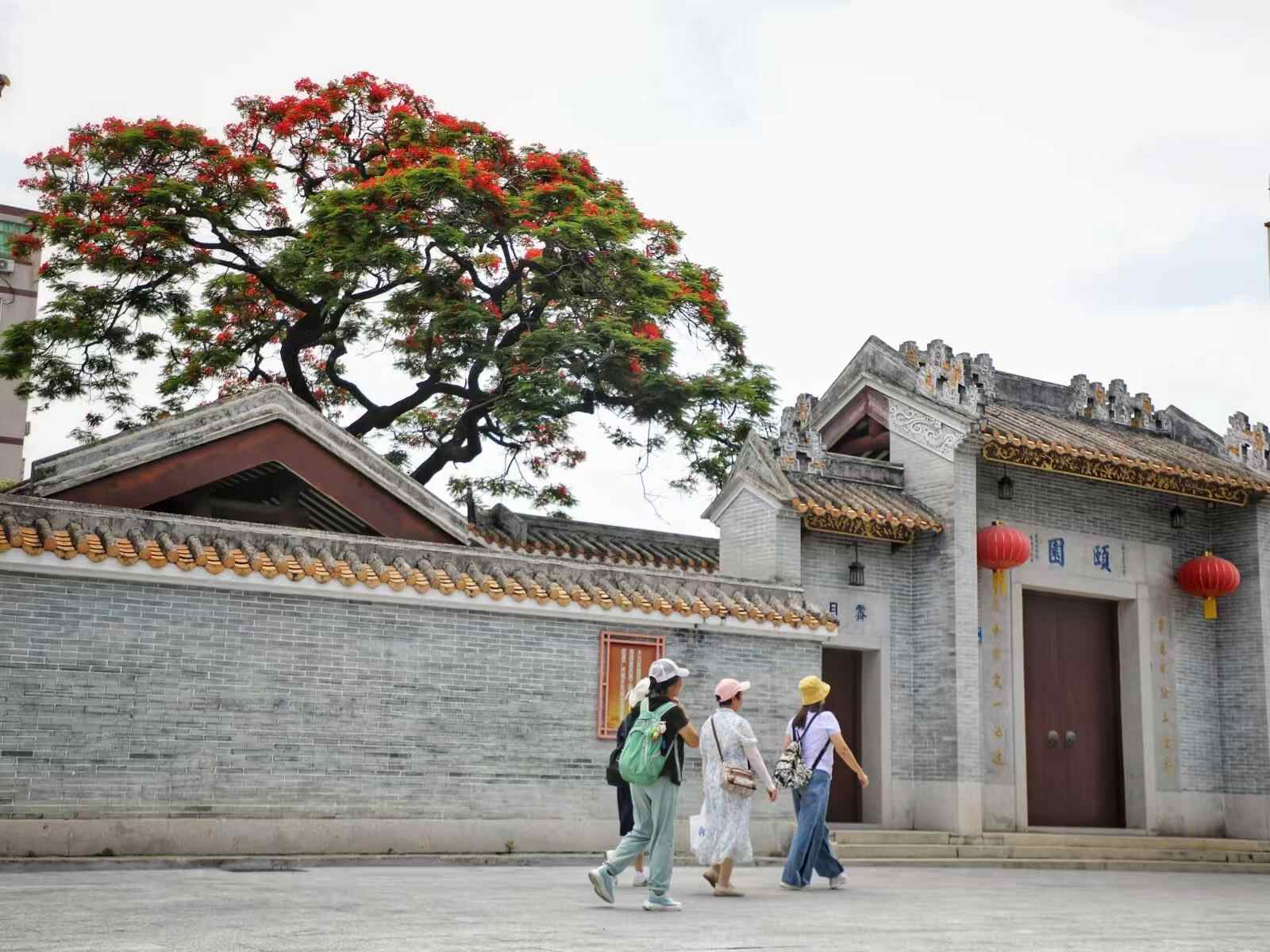 “这两天刚好有空就在小红书搜索周边吃喝玩乐攻略,看到南村的凤凰花就来了,虽然还没完全盛开,但已经很好看了,古祠红花有种古色古香的感觉。”市民黄小姐和朋友特地从天河区过来南村赏花。